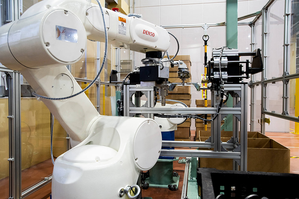4品種に対応可能なピッキングロボットで容器の入れ替え作業を自動化