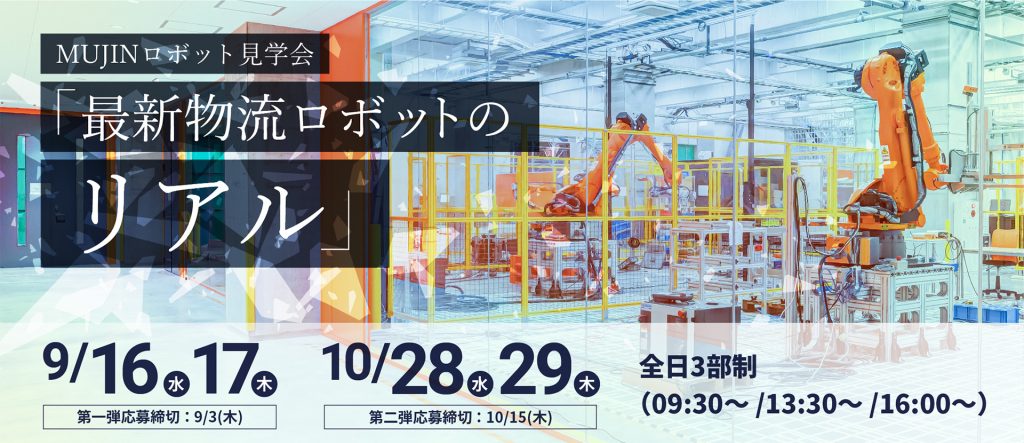 本社併設の都内最大級ロボットセンターにて、「MUJINロボット見学会『最新物流ロボットのリアル』」を開催いたします。
