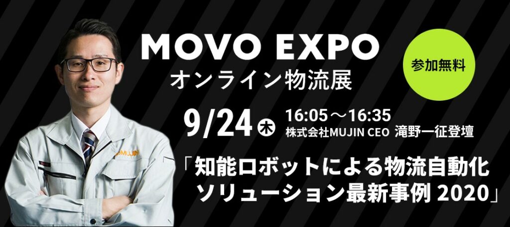 株式会社MUJINは、2020年9月24日(木)に開催される、株式会社Hacobu主催「MOVO EXPO オンライン物流展」に出展いたします。