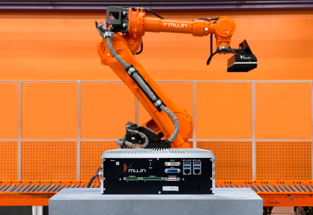 知能ロボットコントローラ「MUJINコントローラ」は、産業用ロボットに接続することで、ロボットを知能化し、高度な自動化を短期間で簡単に実現するものです。