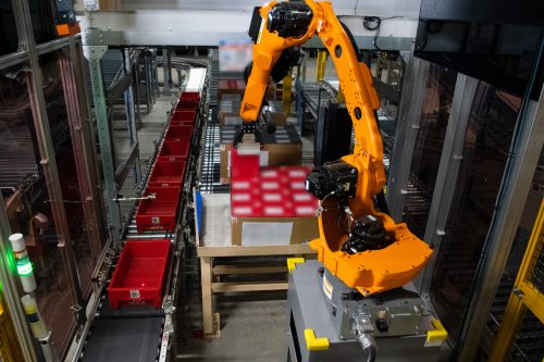 株式会社Mujin(代表取締役CEO:滝野一征、以下Mujin)は、株式会社日立物流様(執行役社長:中谷 康夫様、以下日立物流様)と共に、千葉県の物流センターにて、3台の知能ロボットを稼働させました。本センターは、世界的スポーツシューズメーカー様の日本国内唯一の拠点です。知能ロボットにより、靴の入ったシューズボックスを、店舗別に仕分けを行うシステムへ供給する作業の自動化を実現いたしました。